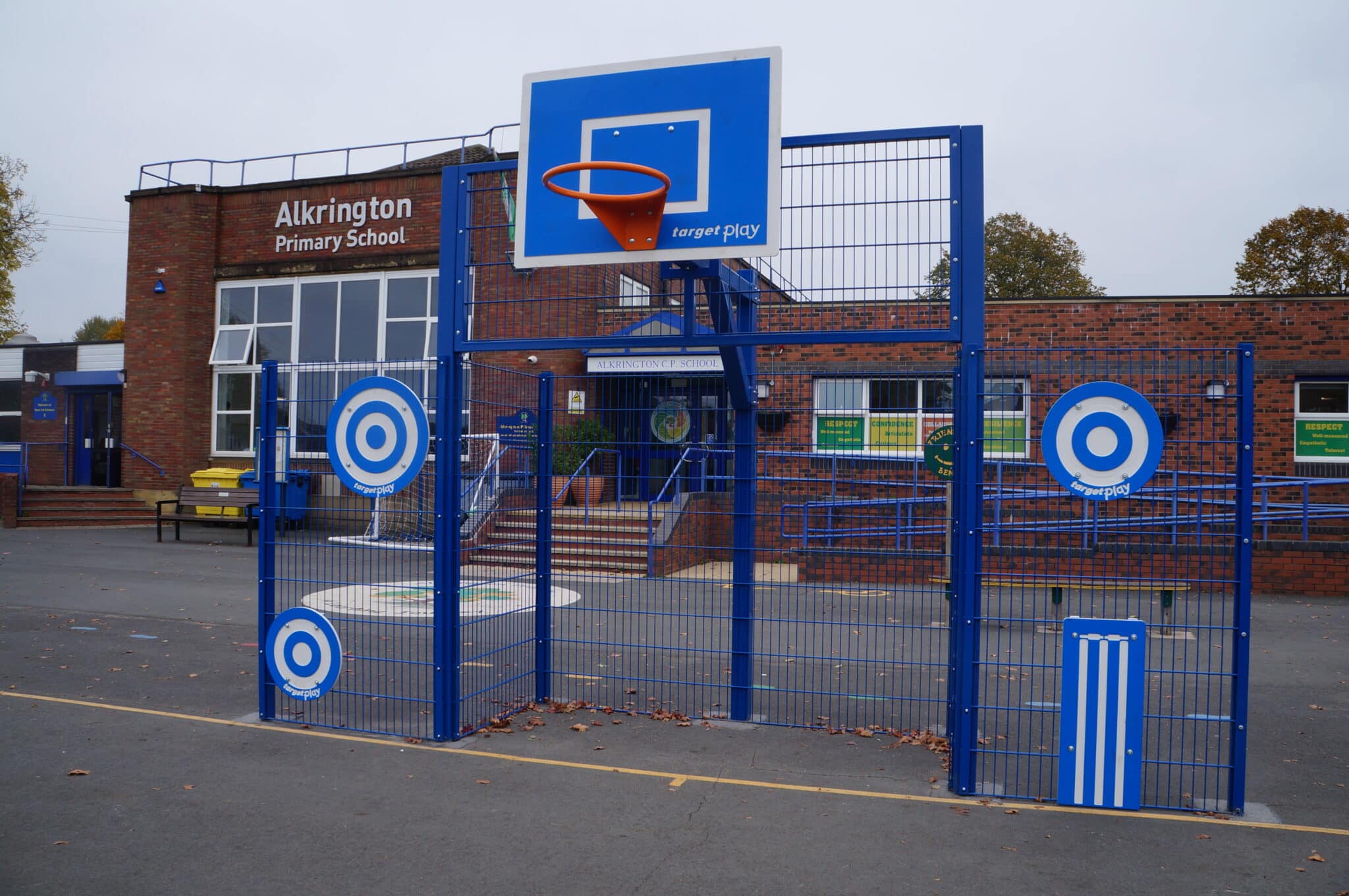 Positioned in an area suited to frequent use, the goal ends were installed to provide a focused space for active play without disrupting the rest of the playground. Target panels were added to encourage accuracy and reduce stray balls, with one serving as a protective screen in front of school windows.