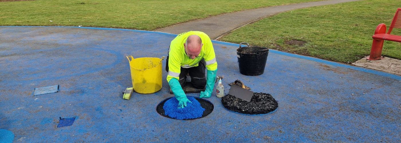 To keep your wet pour playground in top condition, we provide comprehensive wet pour repair services. Our team can quickly address minor damage with perimeter repairs or full resurfacing, helping to extend the life of your wet pour surfaces. For smaller fixes, we supply easy-to-use wet pour repair kits as well as rubber mulch repair kits, both available in a variety of colours. These kits make it simple to maintain a consistent look or even introduce a contrasting shade for a creative touch, while keeping your surface safe, durable, and visually appealing.