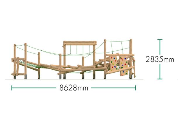 Our Jungle Climber Summit is a dynamic and challenging climbing frame, designed to help children develop strength, balance, coordination, and confidence through active play. Featuring rounded timbers, durable climbing ropes, and an exciting climbing panel, this structure encourages kids to test their agility, improve gross motor skills, and build stamina as they navigate different climbing routes. Perfect for schools, parks, and outdoor play areas, the Summit supports unstructured play, inspiring creativity, problem-solving, and adventurous exploration. With a sanded timber finish for durability and a smooth touch, this playground climbing frame is built to withstand years of active use. Add the Jungle Climber Summit to your outdoor space and provide children with endless climbing challenges and fun.