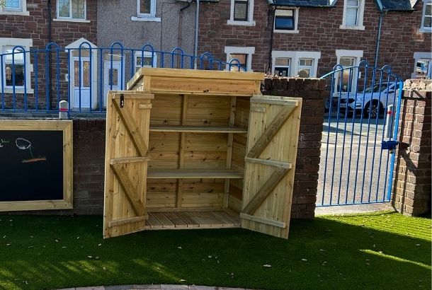 These high quality outdoor wooden sheds are perfect for storing playground toys and equipment and have a great variety of uses.