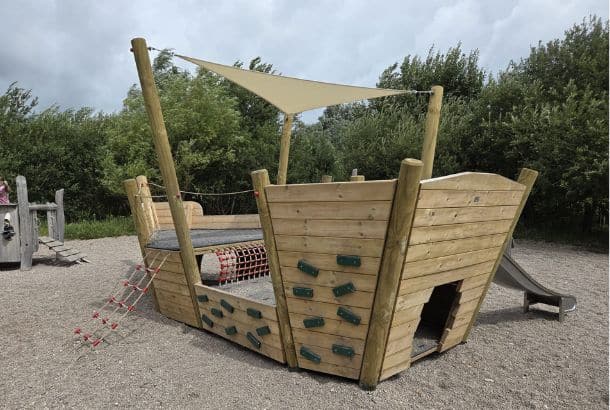 Sail the open seas with our impressive Pirate Ship Midi! It is packed with a huge variety of play features including a slide, wobbly bridge, climbing panel and cargo net to keep children busy for hours! Designed to encourage physical and imaginative play over multiple levels, the Pirate Ship Midi promotes challenging and imaginative role play within the playground environment.