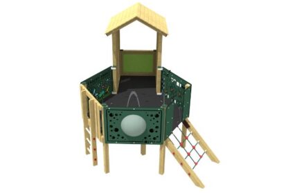 Featuring tactile activity playboards, it promotes fine motor skill development and sensory play, helping children enhance tactile awareness and coordination. The hexagonal design provides more space for children to play and allows carers to join in, creating an inclusive environment. With a ramp and net climber, the tower supports physical development, gross motor skills, balance, and strength, boosting confidence and coordination.