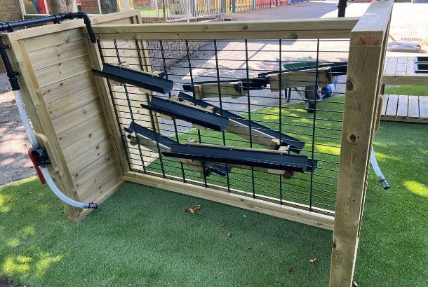 Crafted from high-quality, weather-resistant timber, the Hydro Wall is freestanding, sturdy, and built to withstand frequent use and the British weather. It is easy to assemble and flexible enough to be positioned anywhere within your playground layout, providing a durable and engaging educational resource.