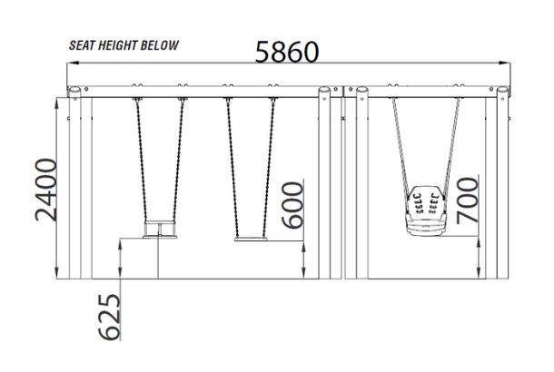 Swings are traditional playground equipment that never fail to exhilarate a child and are a staple playground favourite. This triple swing frame (round) comes complete with both flat, cradle and mirage seat for use by younger and older children and will provide hours of inclusive fun! The swings have a natural look that would enhance any play area.