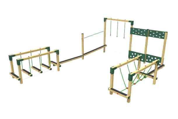 This diverse range allows numerous children to play simultaneously, building on social and communication skills. This timber trim trail can be used as a standalone piece, or as part of a bigger playground project.