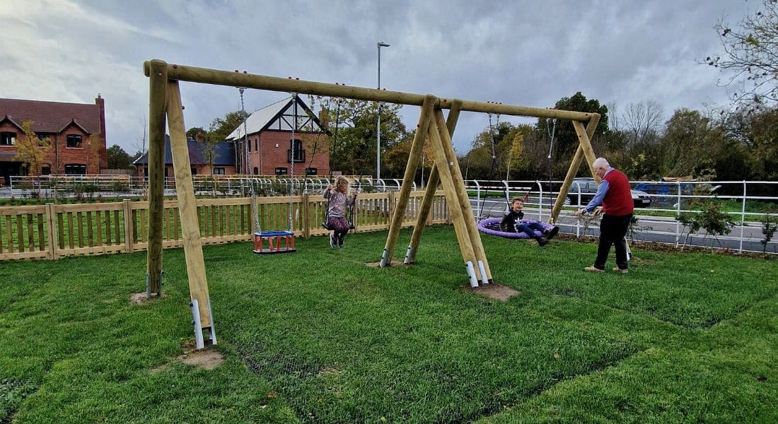 ‘The new village hall is at the heart of our efforts to reignite a sense of community missing for some time, allowing events to happen near where locals live, so they don’t have to disperse to neighbouring communities’ explains Council Chair Neil Copeland. ‘We have so many bookings for children’s parties now, the new playground is an essential part of the village hall’.