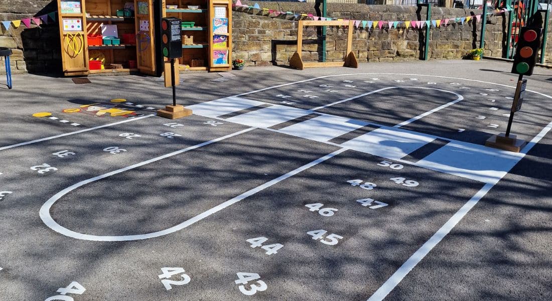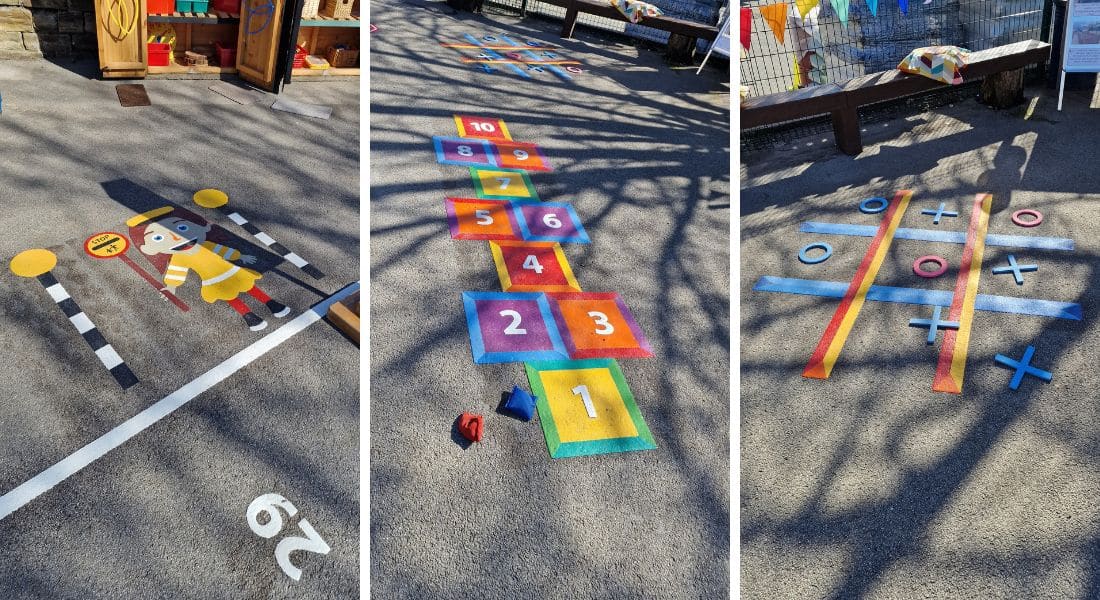 The space is brought to life with a combination of bespoke and standard playground markings, turning the ground itself into an interactive canvas. From playful pathways to imaginative zones, these markings encourage children to engage, invent games and learn through movement.