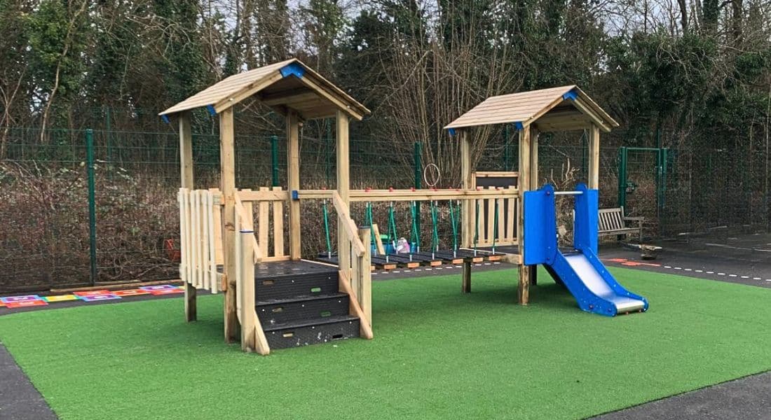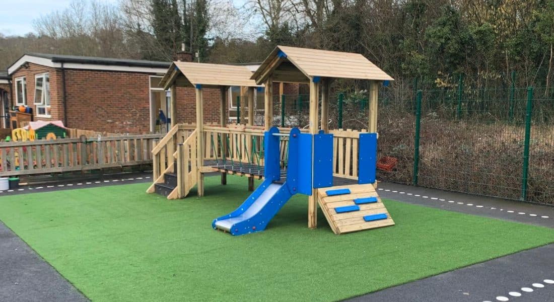 Marden Lodge Primary transformed their early years playground, by installing two bespoke play structures, including a bespoke Scafell Pike play tower, and an bespoke Adventure Trail 6 L-Shaped on artificial grass safety surfacing. The upgraded space supports safe, imaginative play, helping young children develop physical skills, coordination, and social interaction from an early age.