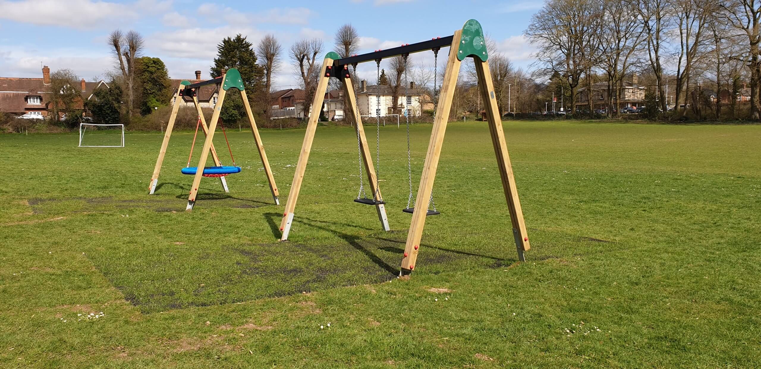 A selection of equipment for Toddlers was grouped inside a fenced play area whilst the more challenging equipment suitable for older children was situated just outside. In addition to this, an adult outdoor gym area was created on the same field using a mixture of metal and timber items to provide a mixture of both resistance and static-based gym stations.